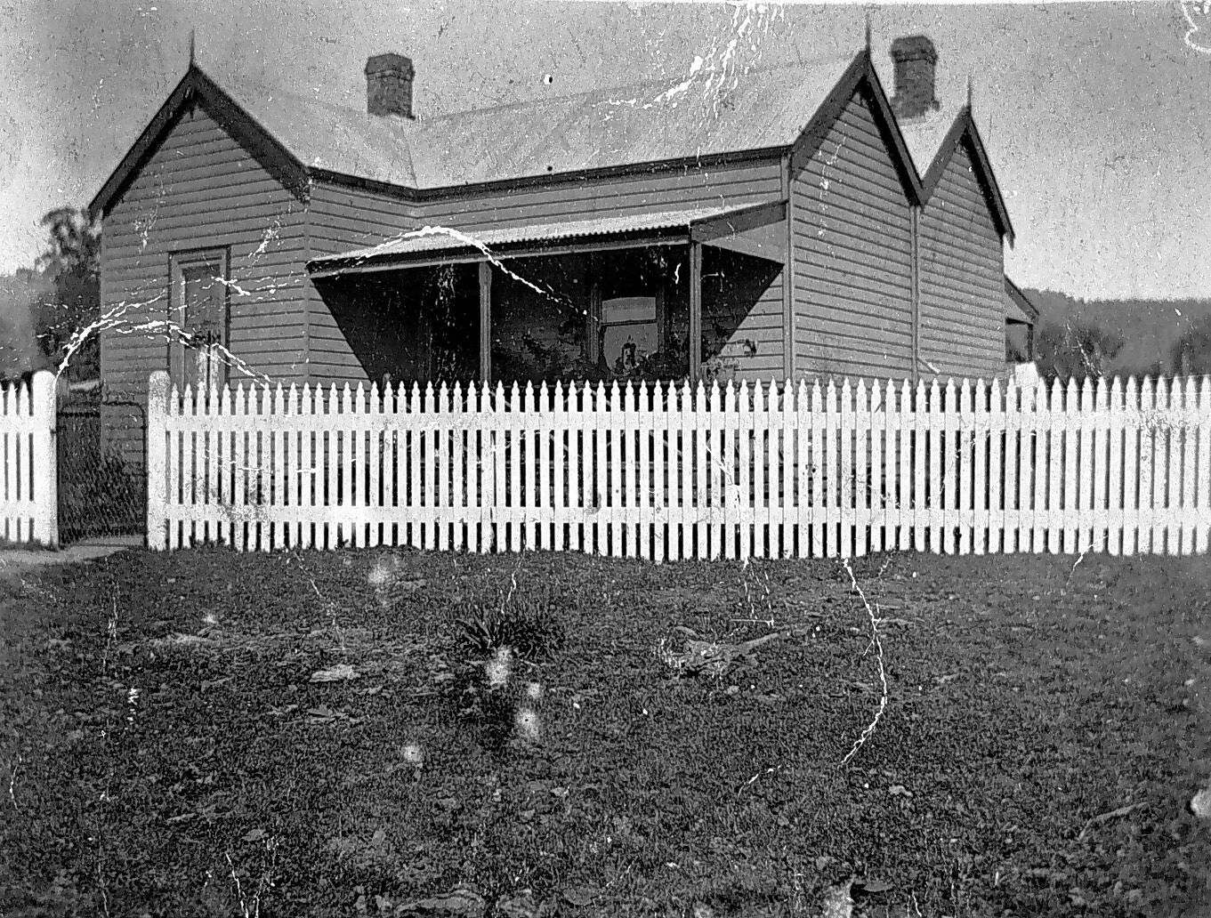 The Whitfield home. There is a picket fence.