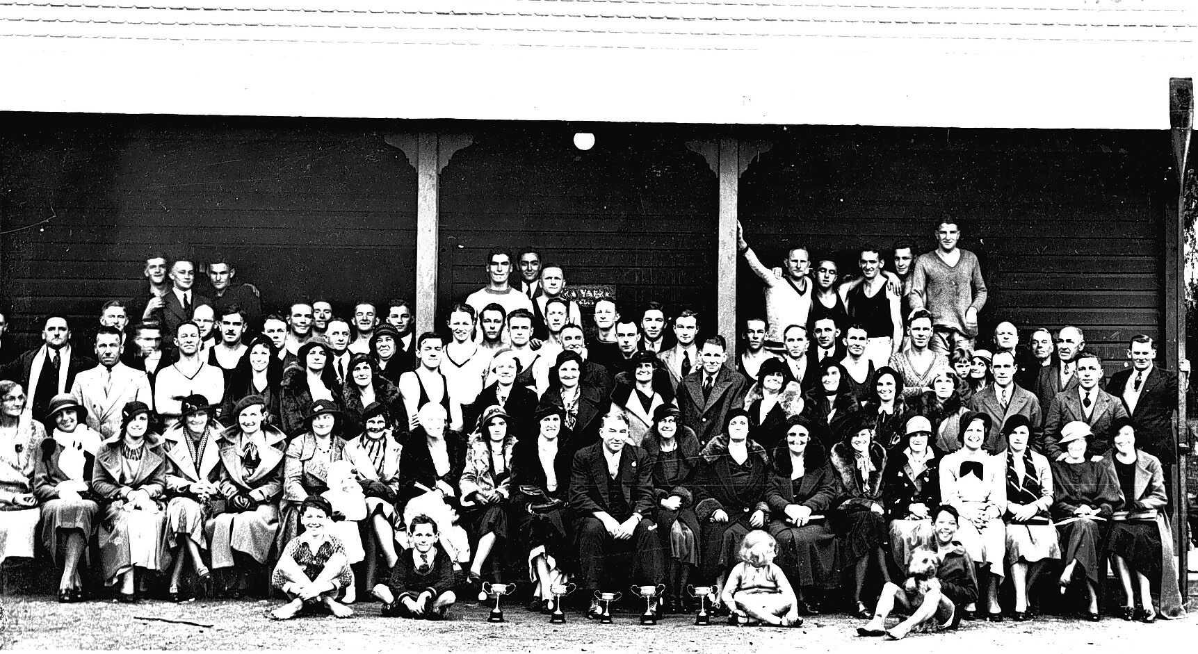 A gathering at the Yarra Yarra Rowing Club on ladies day and the 'Artie' Wishard fours.