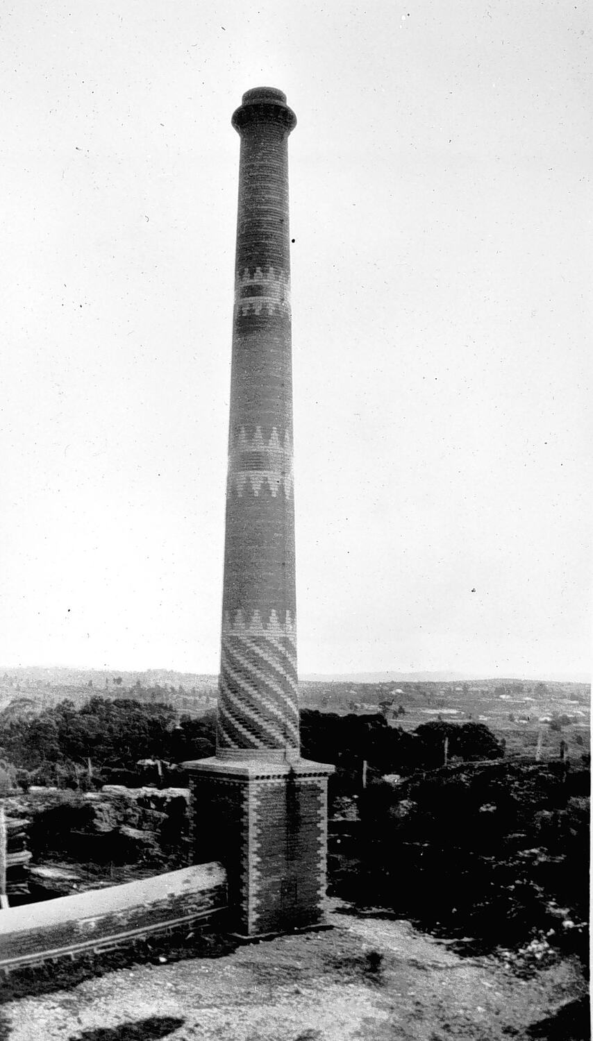 A patterned chimney stack at the 'Red White and Blue Mine'.