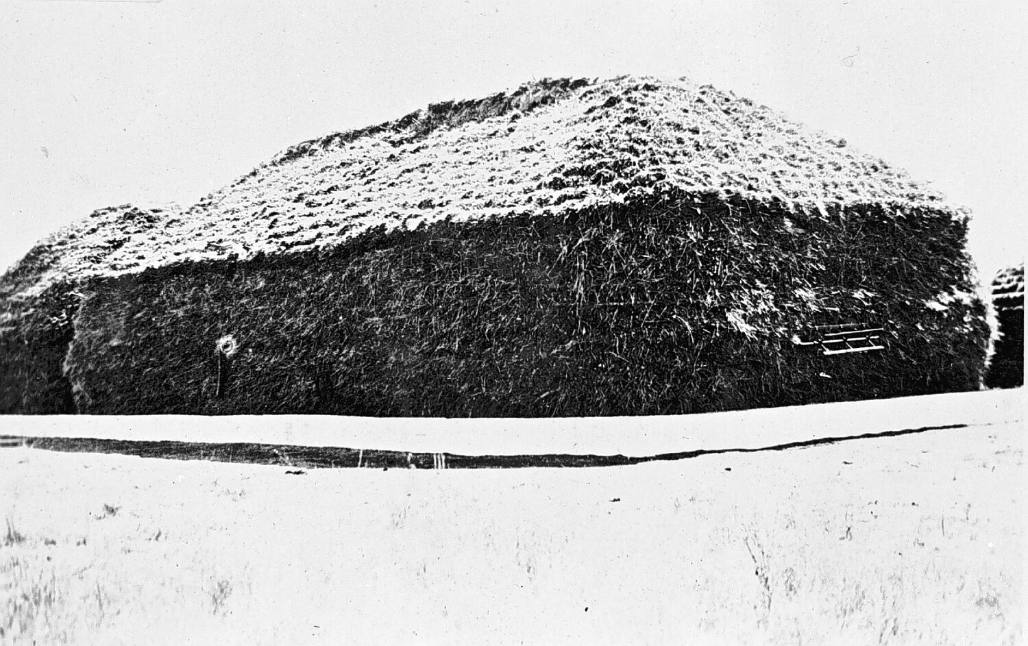 Haystacks with corrugated iron mouse guard.