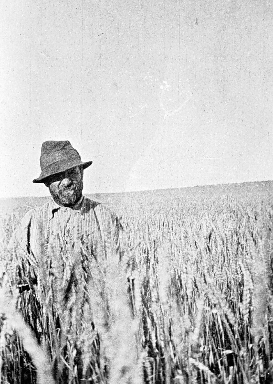 Tom Runnalls standing in a field of wheat.