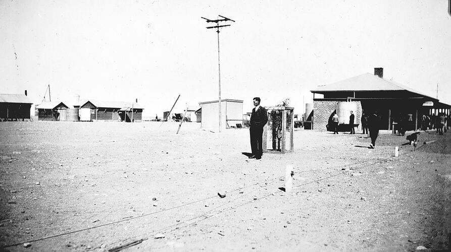 Passengers at the railway station at Cook.