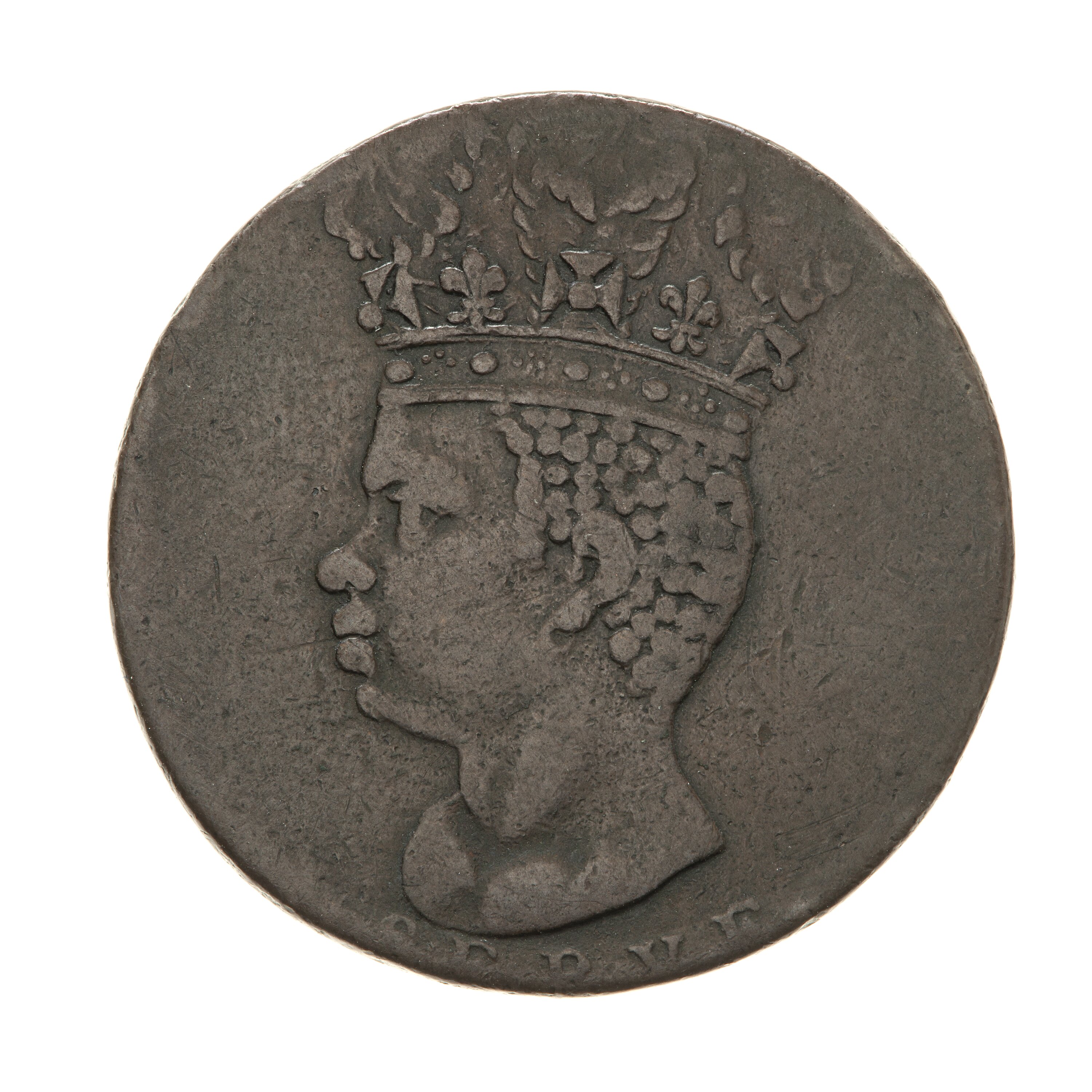 In 1788 the Gibbs Plantation successfully circulated a token coinage featuring a slave and a pineapple throughout Barbados. A second design was sought in 1792 based on the Seal of the island, King George III as Neptune being drawn across the sea in a bega of hippocampi. The dies were engraved by J. Milton of the Royal Mint, London who seems to have supervised the striking on 24 July 1792. The seal was granted by King Charles II on 3 June 1663.