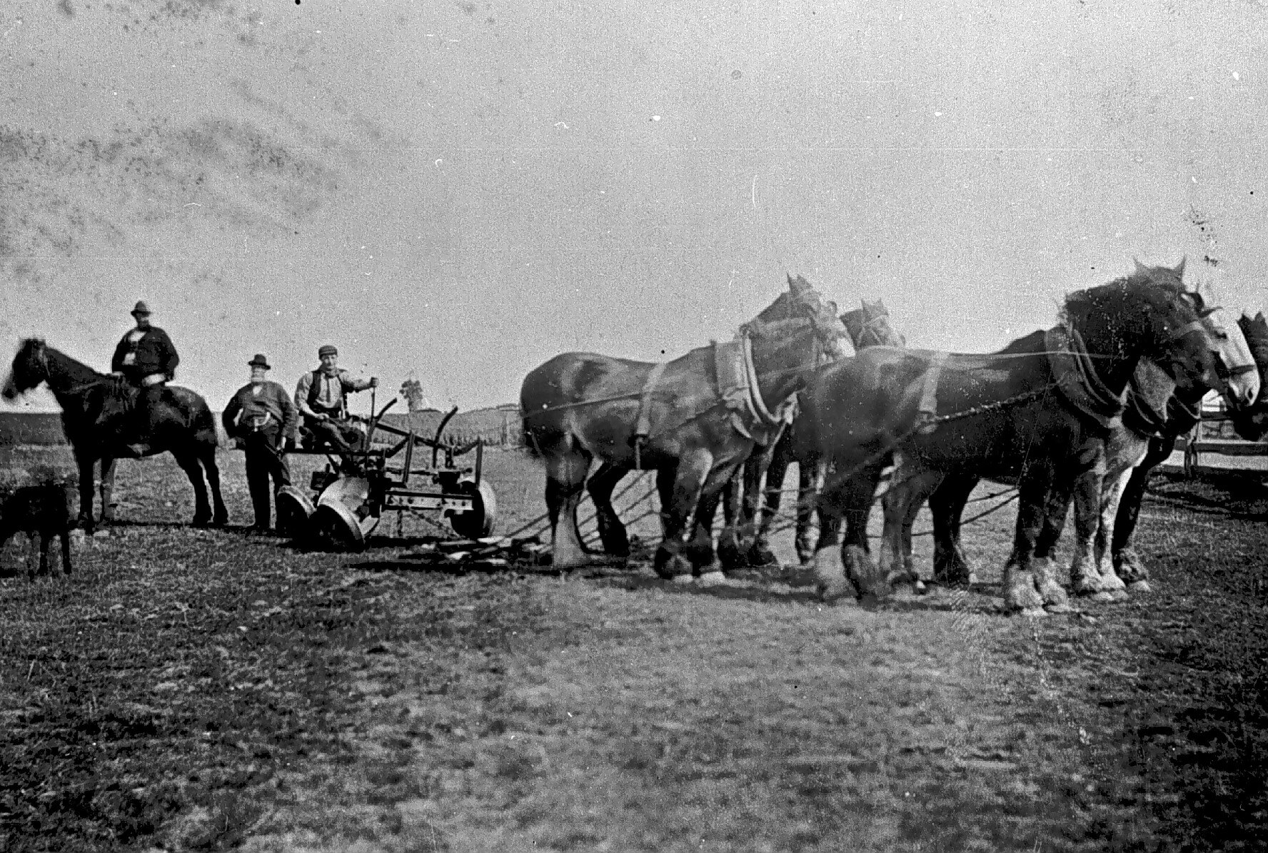 Agricultural Equipment, Dogs, Domestic Animals, Farms, Horses, Ploughs, Workers, Fences, Fashions, Hats