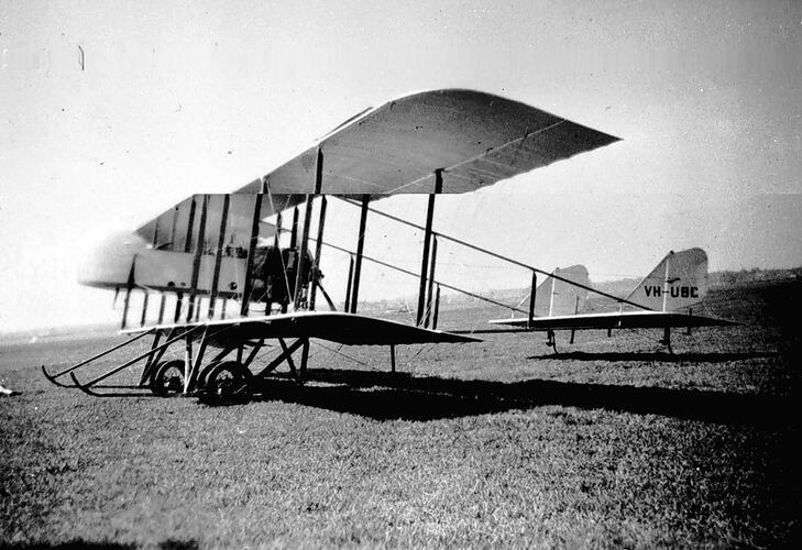 A restored 1916 Farman Shorthorn biplane with the registration VH-UBC at Moorabbin Airport. Formerly used by the Central Flying School, Point Cook and then by R.G. Carey for joyflights form Port Melbourne. This machine in now held in the collection of the Canada Aviation & Space Museum in Ottawa.