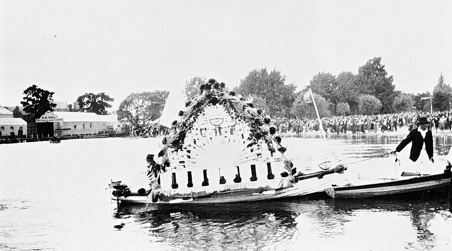 A decorated boat at the Ballarat regatta on Lake Wendouree.