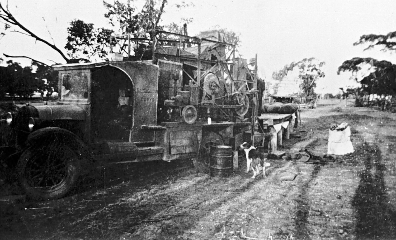 Machine used for grading and pickling wheat for seed. It is on the back of a truck.