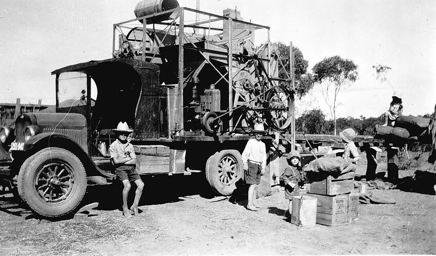 Machinery for pickling wheat loaded on a truck on 'Trinita' station. This was Vic Dean's property.