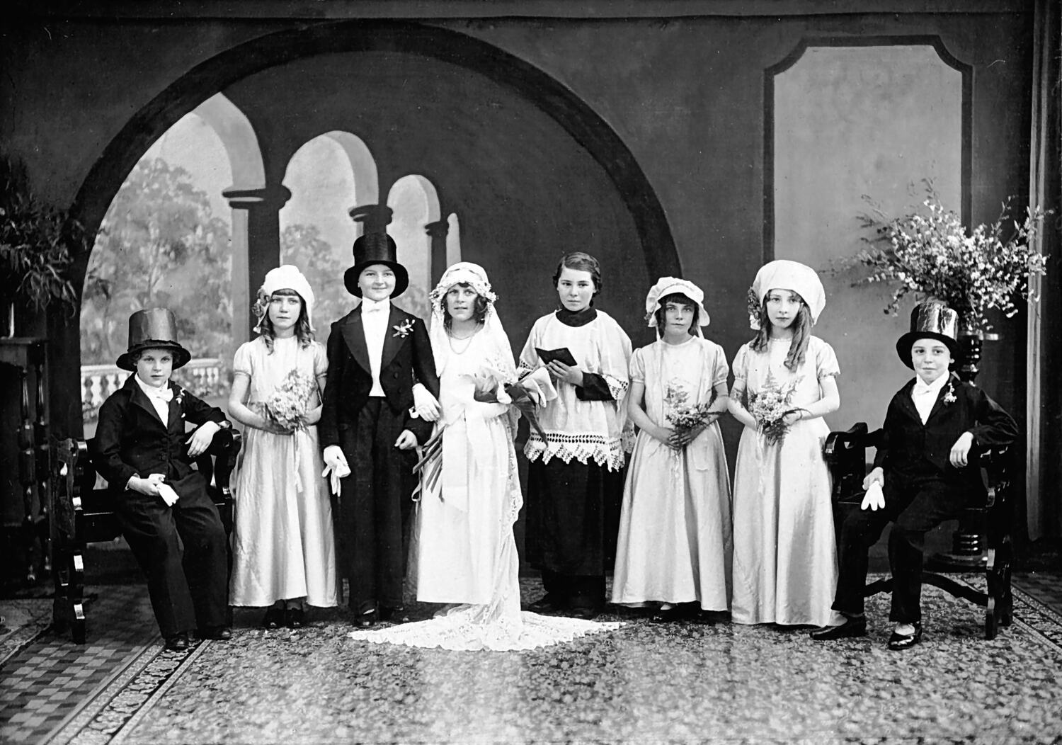 Children dressed as a wedding party for a fancy dress competition between schools.