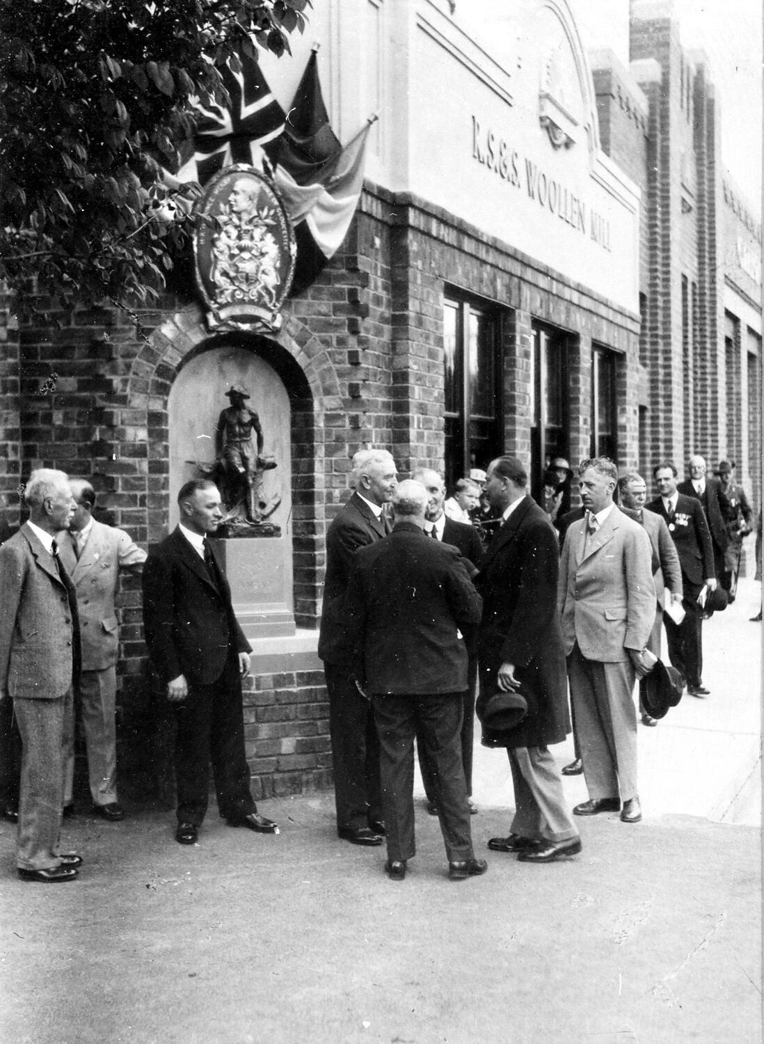 The Duke of Gloucester being welcomed to the R S & S Woollen Mill.
