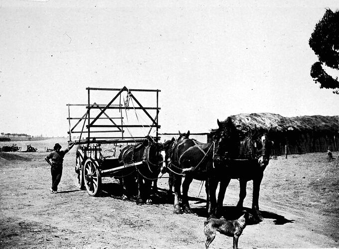 Agricultural Workers, Dogs, Domestic Animals, Drays & Wagons, Farms, Horses