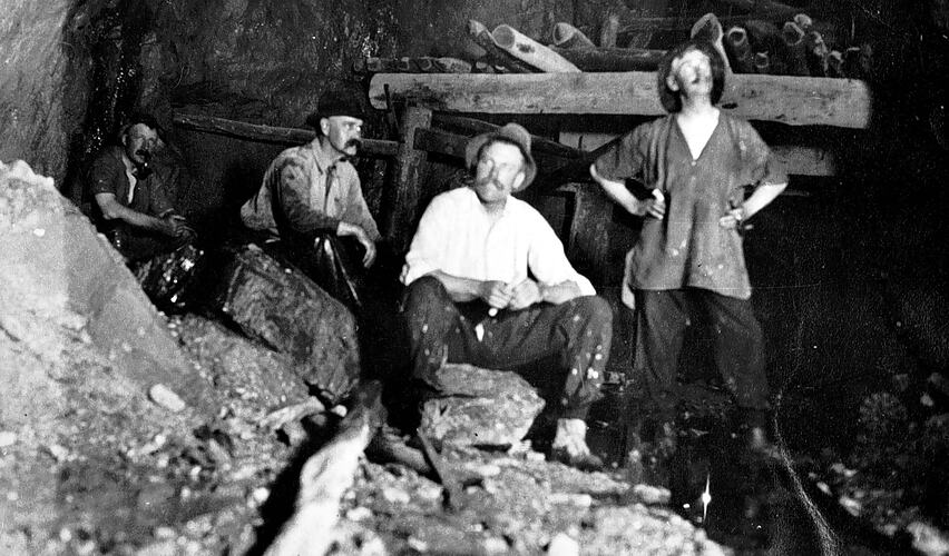 Four miners underground in a gold mine.