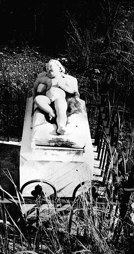 A child 's grave in the Darwin Cemetery. The naked figure of a child has been carved on top of the tomb.