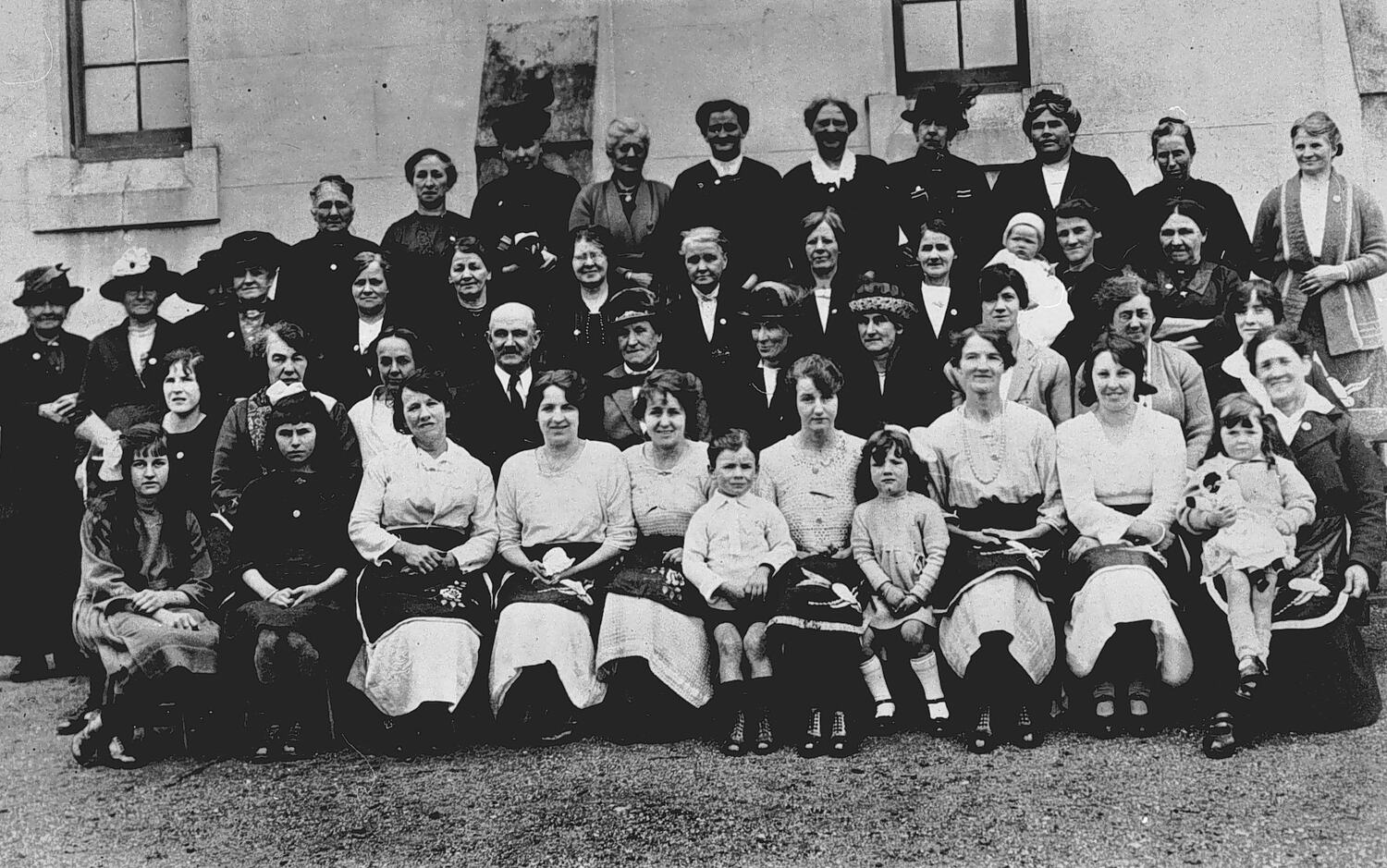 Committee members and workers of the California Hill Methodist Sunday School. They are gathered for an anniversary tea meeting held in October each year. In the picture are 2nd back row right to left; Mary Pearce, Stella Newton (mary's daughter) holding Dorothy Pearce. Front row middle; Veda Pearce (Mary's daughter), Nance Pearce (child seated on her right) (Dorothy's older sister).