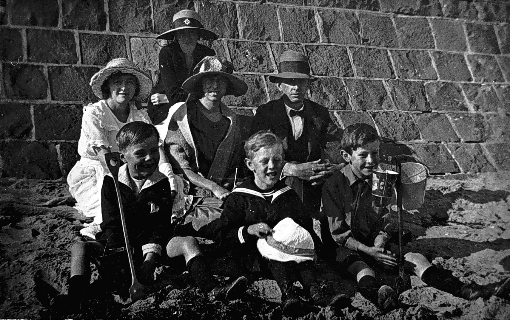 A family group on the beach at St Kilda.