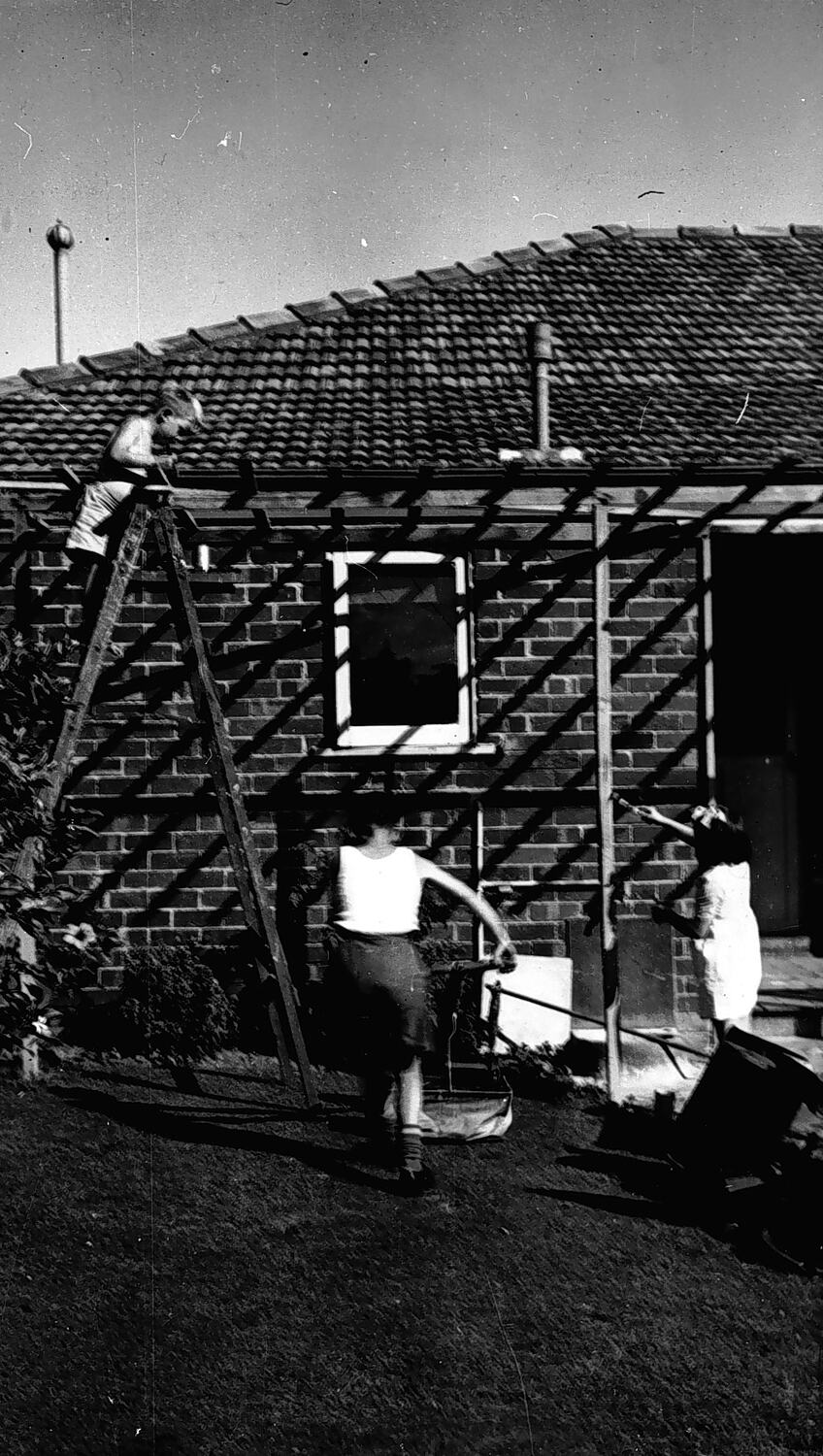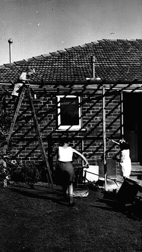 Michael, Ian and Kerry Morse working in their back yard in Caulfield South, circa 1949.