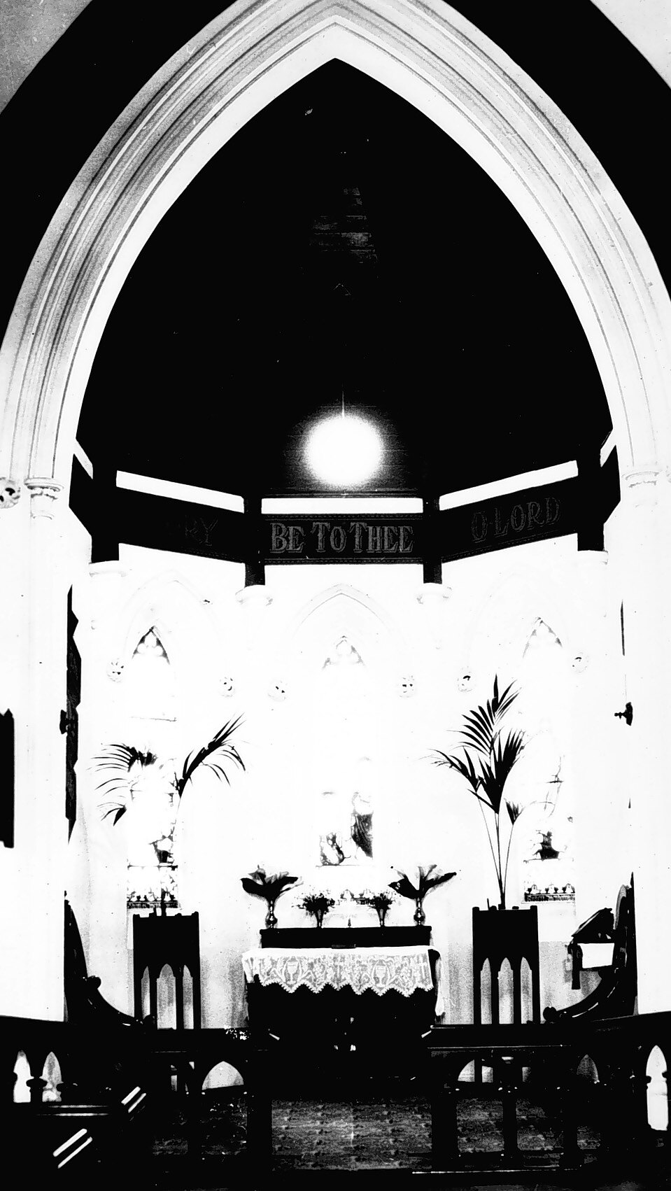 The altar and a stained glass window in the Church of England at Dingley.