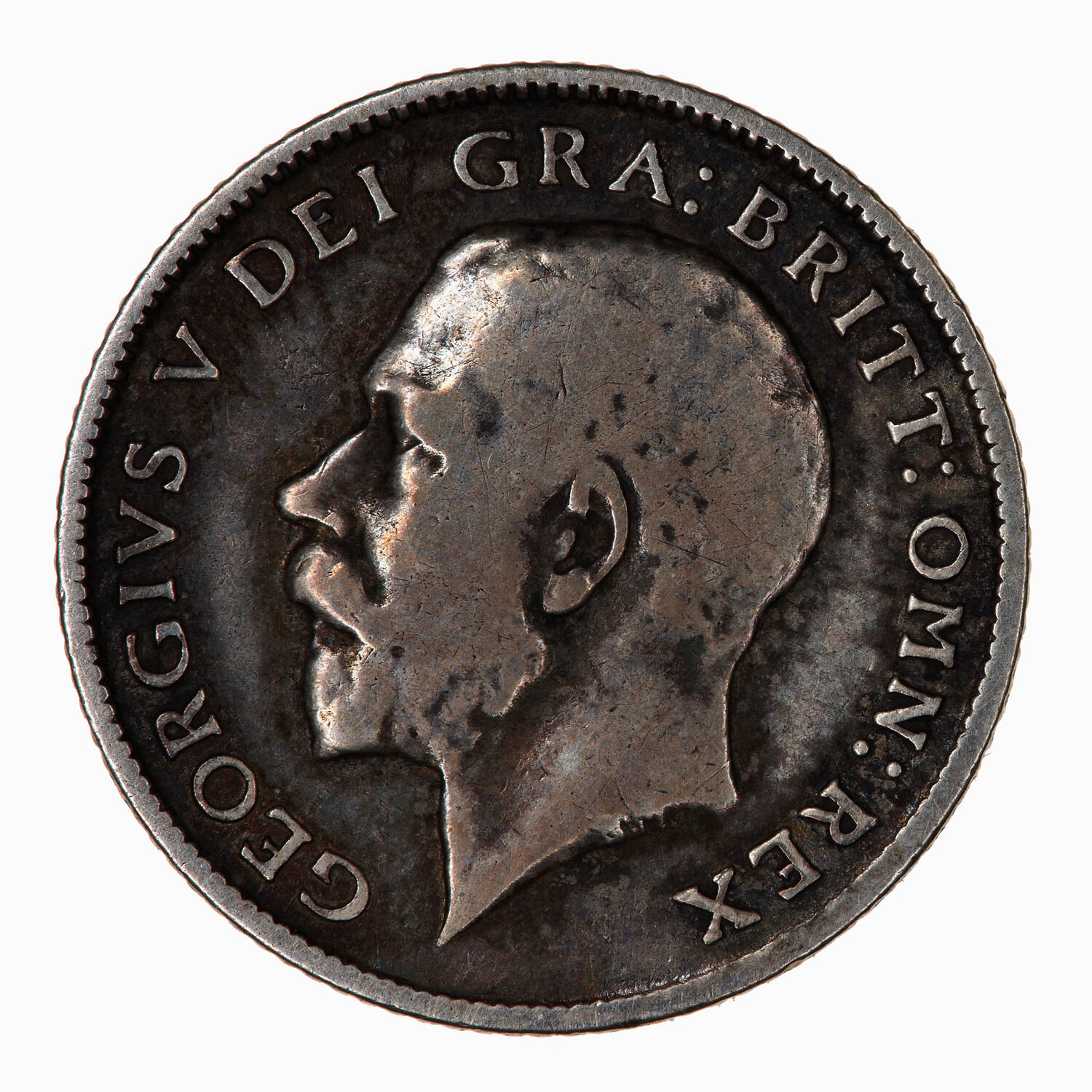 Bare head of the King facing left; below on neck truncation in small letters, B.M. (Bertram MacKennal); around, GEORGIVS V DEI GRA: BRITT: OMN: REX