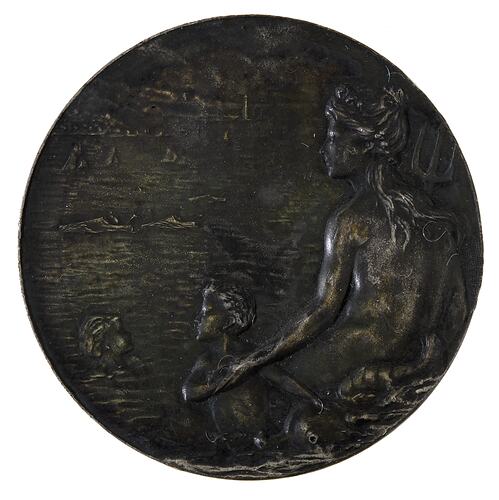 Edge:No inscription. It is a flat edge, blank and without decoration. Obverse: EDUCATION / DEPARTMENT / VICTORIA / SWIMMING / AND / LIFE SAVING Reverse:No inscription