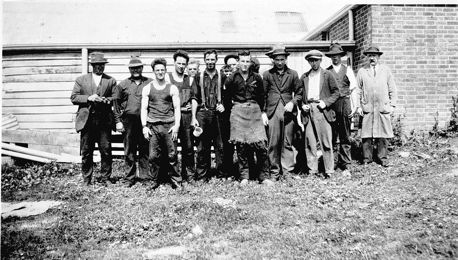 A group of shearers with the property owner.