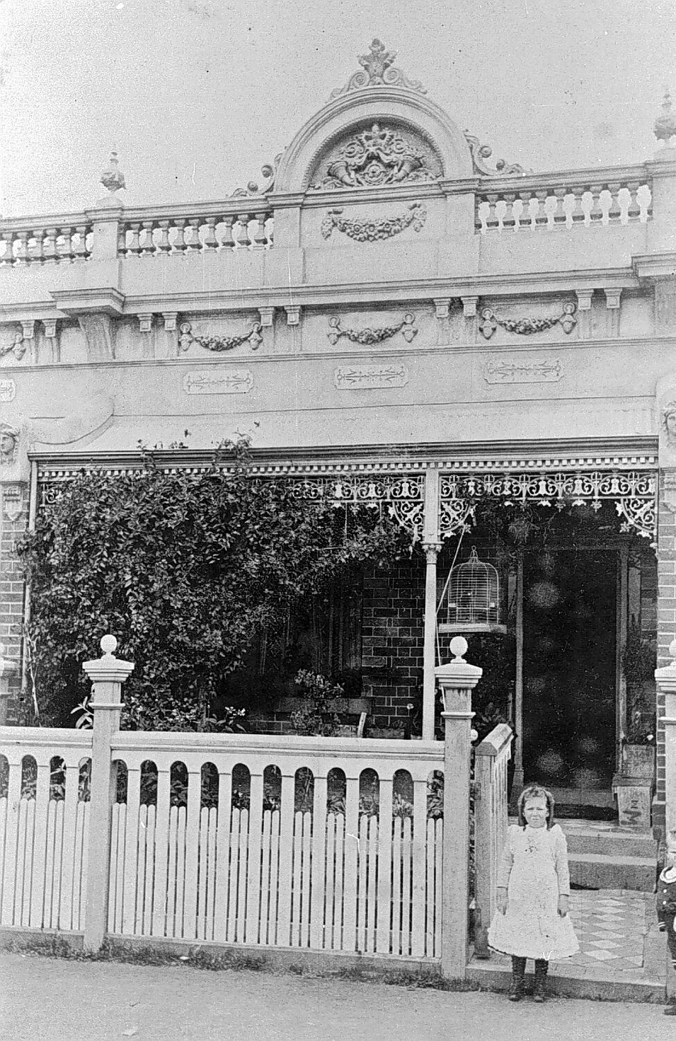 A girl in the gateway of a single-storied terrace house owned by the Richards family. The Sands & McDougall Directories list both an Alfred Richards at 295 Westgarth St and Frederick W Richards at Jenkin St in Northcote in 1900.