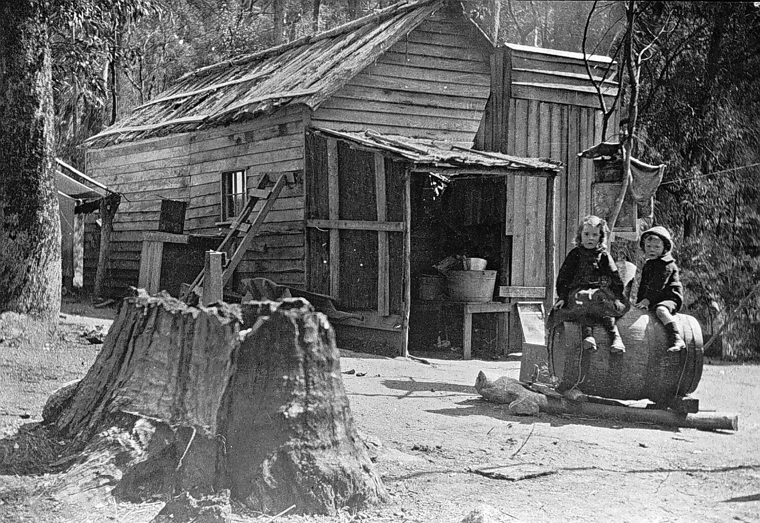 Barrels, Construction Workers, Cooking Utensils, Huts, Road Construction, Timber, Washboards, Children