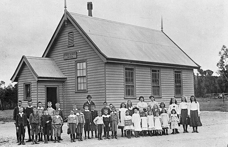 Teachers and pupils outside the Mt Doran State School No.1614.