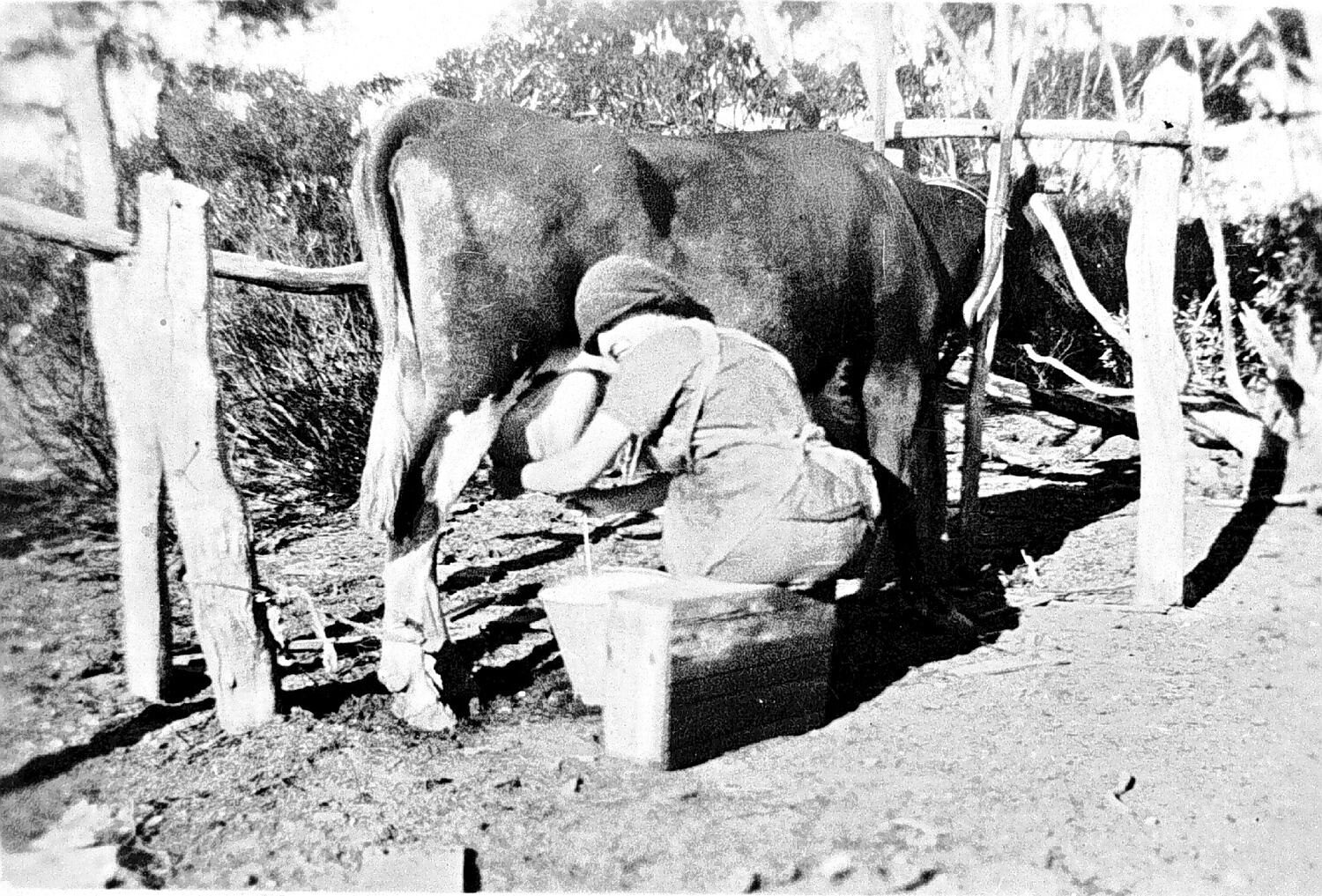 A woman milking a cow.