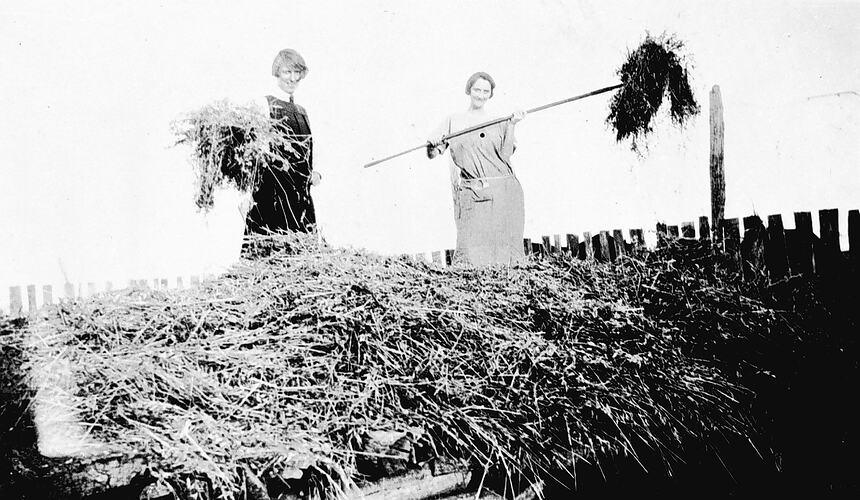 Agricultural Workers, Farms, Hay, Workers, Closer Settlement Scheme, Harvesting, Farmers, Working Life, Rural Life, Rural Women, Women in Agriculture, Women on Farms, Women's Work, Women Farmers