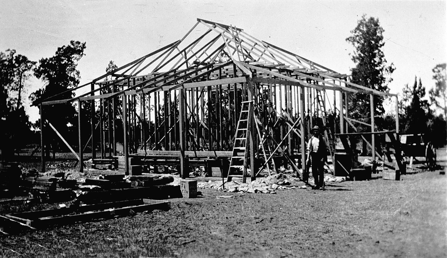 A man building his farm house. The house was later moved into cowangie.