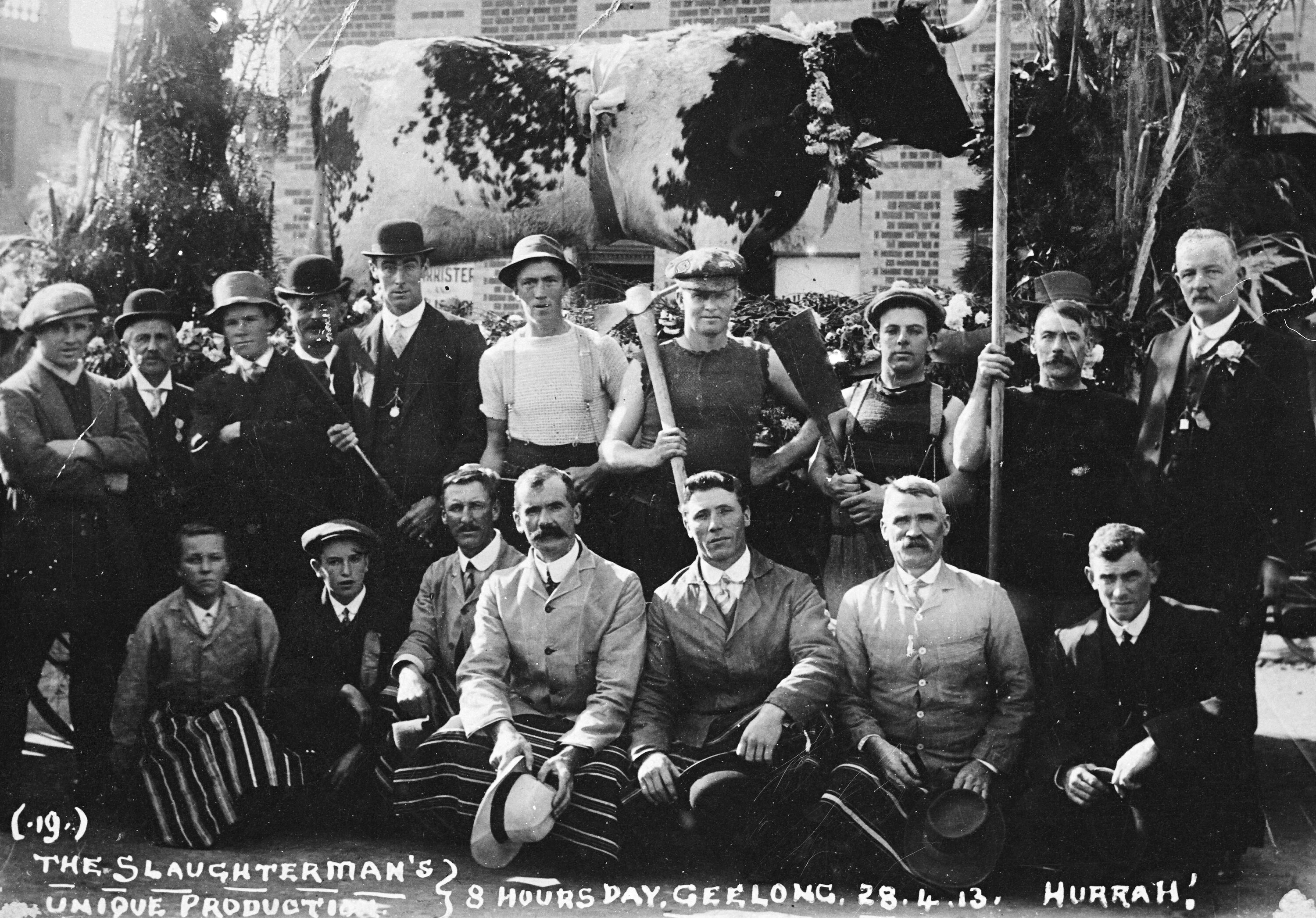 Inscribed: THE SLAUGHTERMAN'S UNIQUE PRODUCTION. 8 HOURS DAY. GEELONG. 28.4. 13. HURRAH!