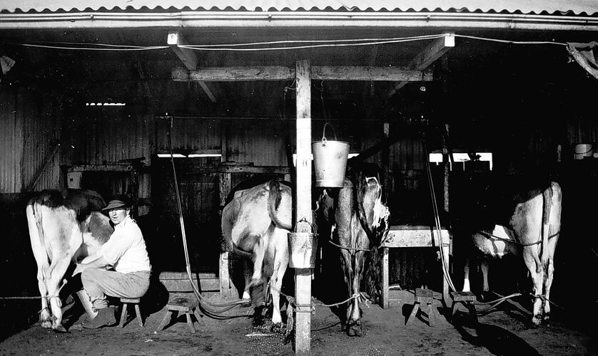 Agricultural Equipment, Agricultural Workers, Dairies, Farms, Milk, Milking Machines, Outbuildings