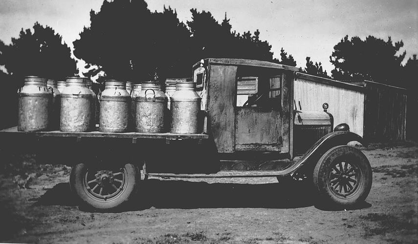 A truck load of milk cans.