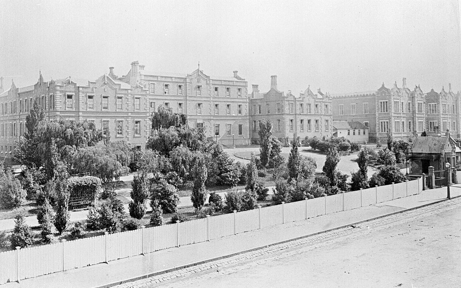The Melbourne Hospital and gardens. (see also MM 007563).
