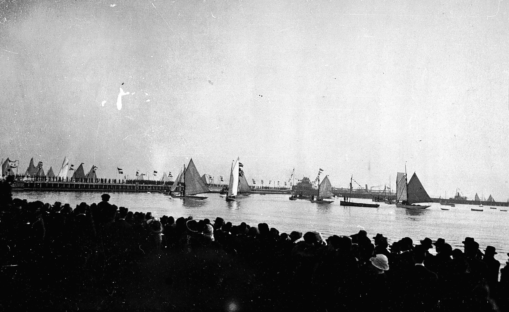 Yachts and crowds awaiting the landing of the Prince of Wales.