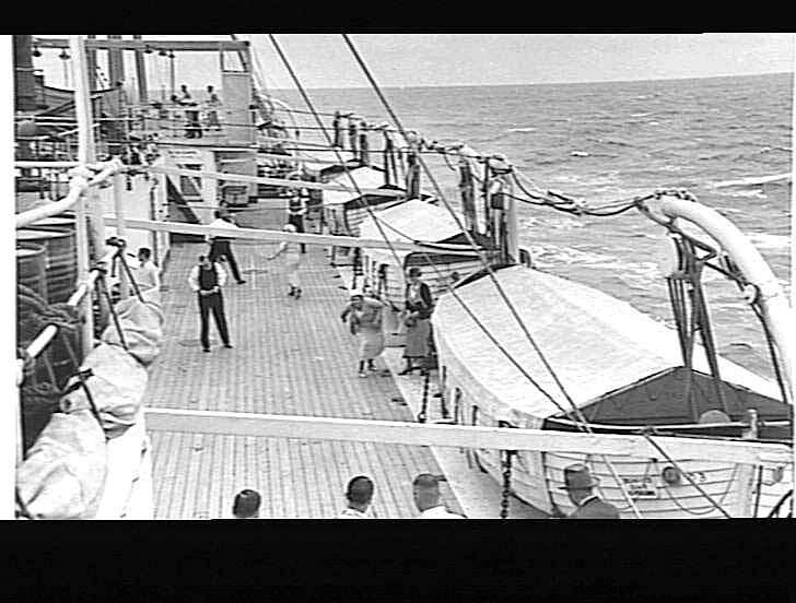 On board ship. Title: the 'Katoomba' five, sports' deck.