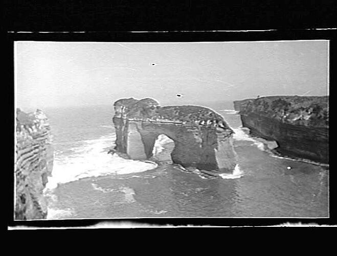 Black and white photograph of 'The Arch' near Port Campbell, Victoria, taken by William Snowdell Anderson, circa 1910-1935.