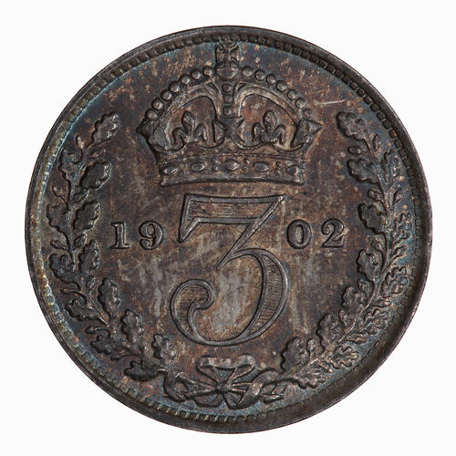 This coin was current in Australia and this was the the model (in terms of size and alloy) for this denomination among those chosen for the coinage of the Commonwealth of Australia (beginning in 1910).