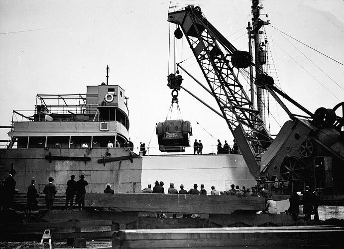 Unloading an electrical turbine from a ship.