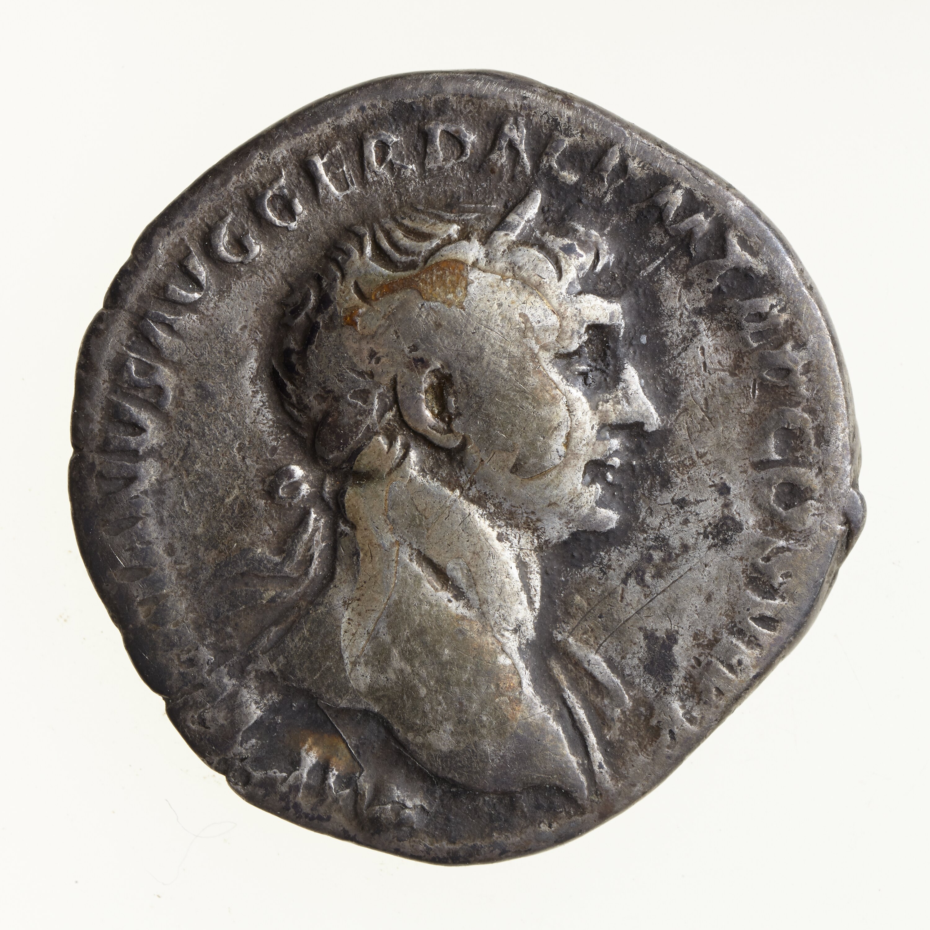 Silver denarius struck during the reign of the Emperor Trajan in the period 112 to 117 AD, Ancient Roman Empire. Minted by Rome. Trajan was Consul for the sixth time (COS VI on this coin) and last time in 112 AD. Therefore this coin was produced in the period 112 to 117 AD.