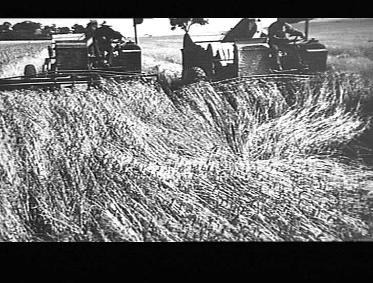 Photo shows Mr Wilsdon 's prize-winning crop being harvested with two 12 ft H.V. McKay autoheaders.