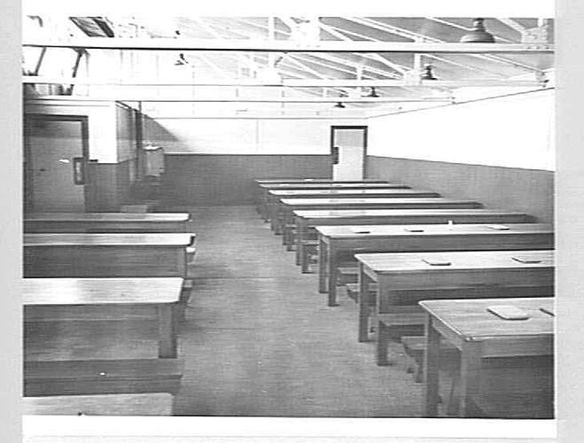 Canteen for use by the workers - note the heat pads on the tables for the billies. Food heaters and urns are located at the back of the canteen.
