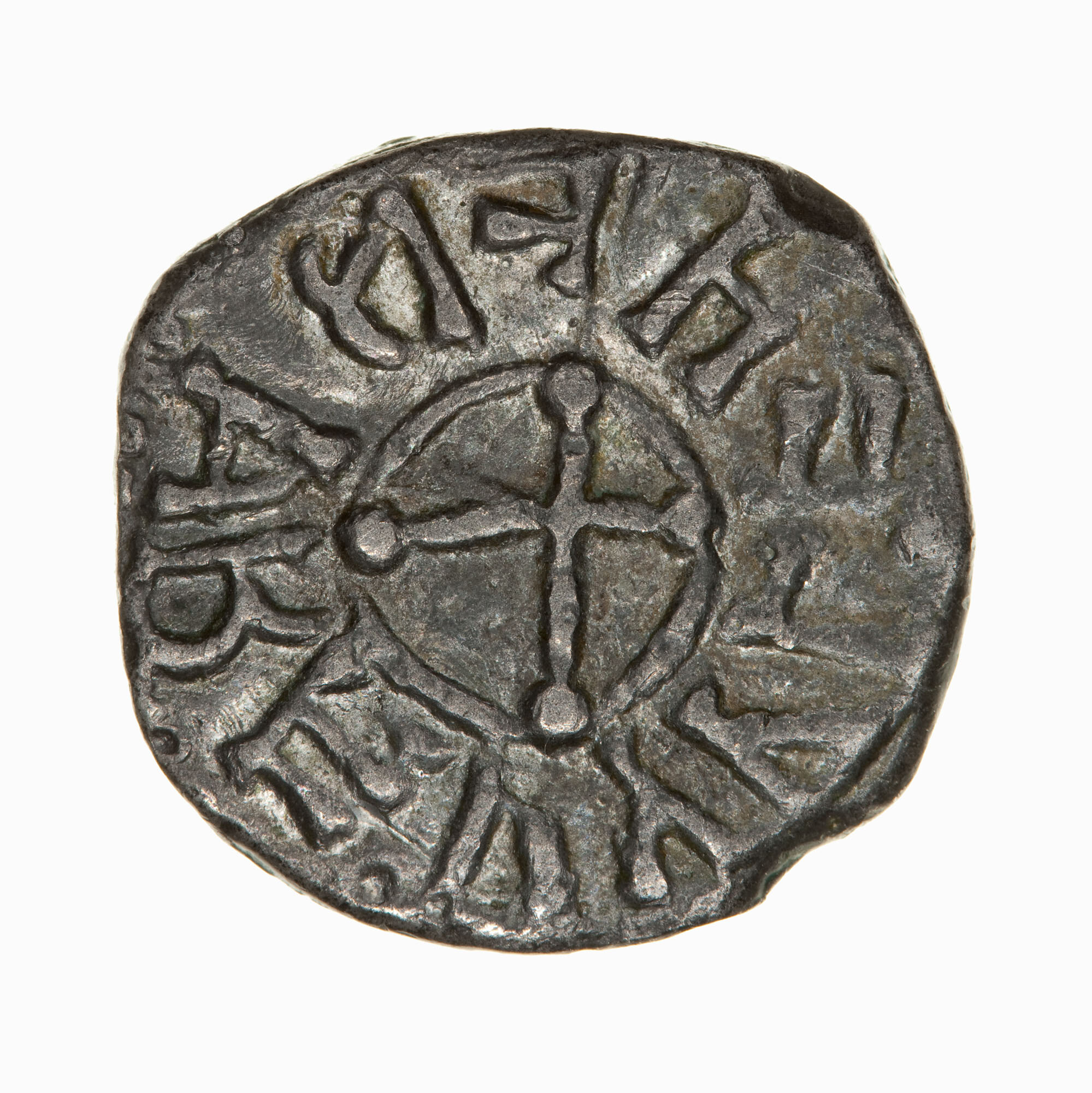 At the centre a cross within an annulet; around, VVFRARFH... (some letters retrograde others difficult to interpret)