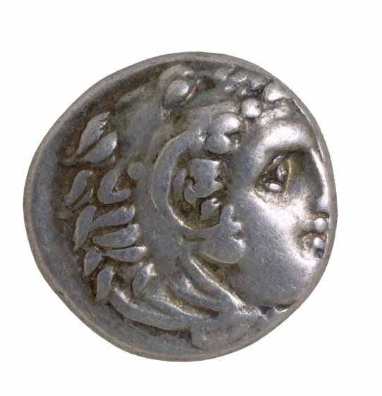 A silver drachm coin issued by King Philip III of Macedonia in the period 323-317 BC