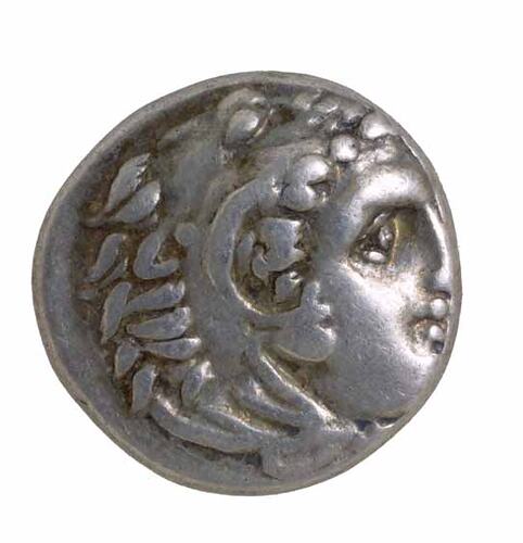 Head of Herakles wearing lion's skin right