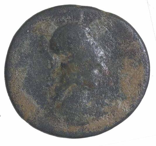 A copper coin issued by the city of Athens in Attica in the period 117-161 AD. Minted by Athens, Under Roman rule. Themistokles, depicted on the reverse of this coin was an Athenian democratic statesman.