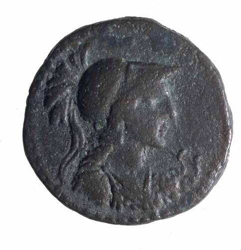 Bust of Athena facing right wearing crested helmet
