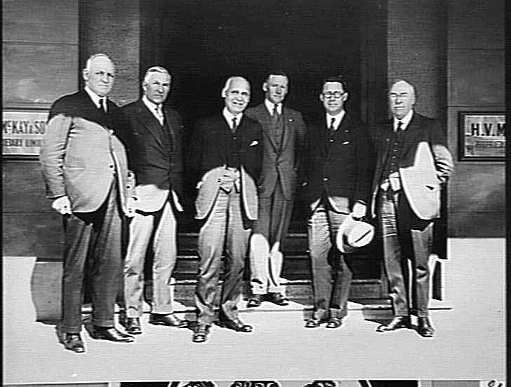 Executives of Massey Harris and H.V. McKay on the steps to head office at 2 Devonshire Road, Sunshine.
