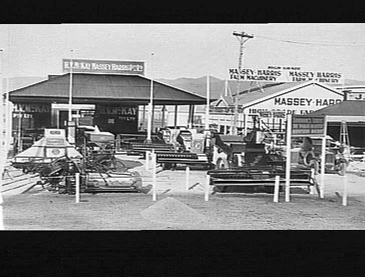 [on back] 'Adelaide Show exhibit September 1932 RW file' McKay Massey-Harris stand at the Adelaide Show, Sep. 1932. Note the Dodge utility on the right hand side of the photo.