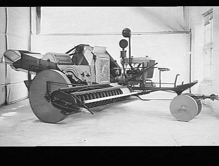 'Hercules ' powered engine functioned rice header, fitted with (covered-in) disc wheels to prevent mud clogging.